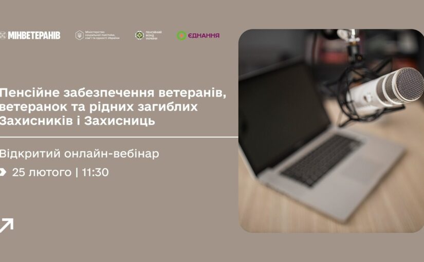 Одне з найпоширеніших питань, з якими звертаються ветерани, ветеранки та родини загиблих Захисників і Захисниць, стосується пенсійного забезпечення. Саме тому Мінветеранів спільно з Міністерством соціальної політики, сім’ї та єдності України, Пенсійним фондом України та за підтримки ІСАР Єднання проводить відкритий вебінар з цієї теми.